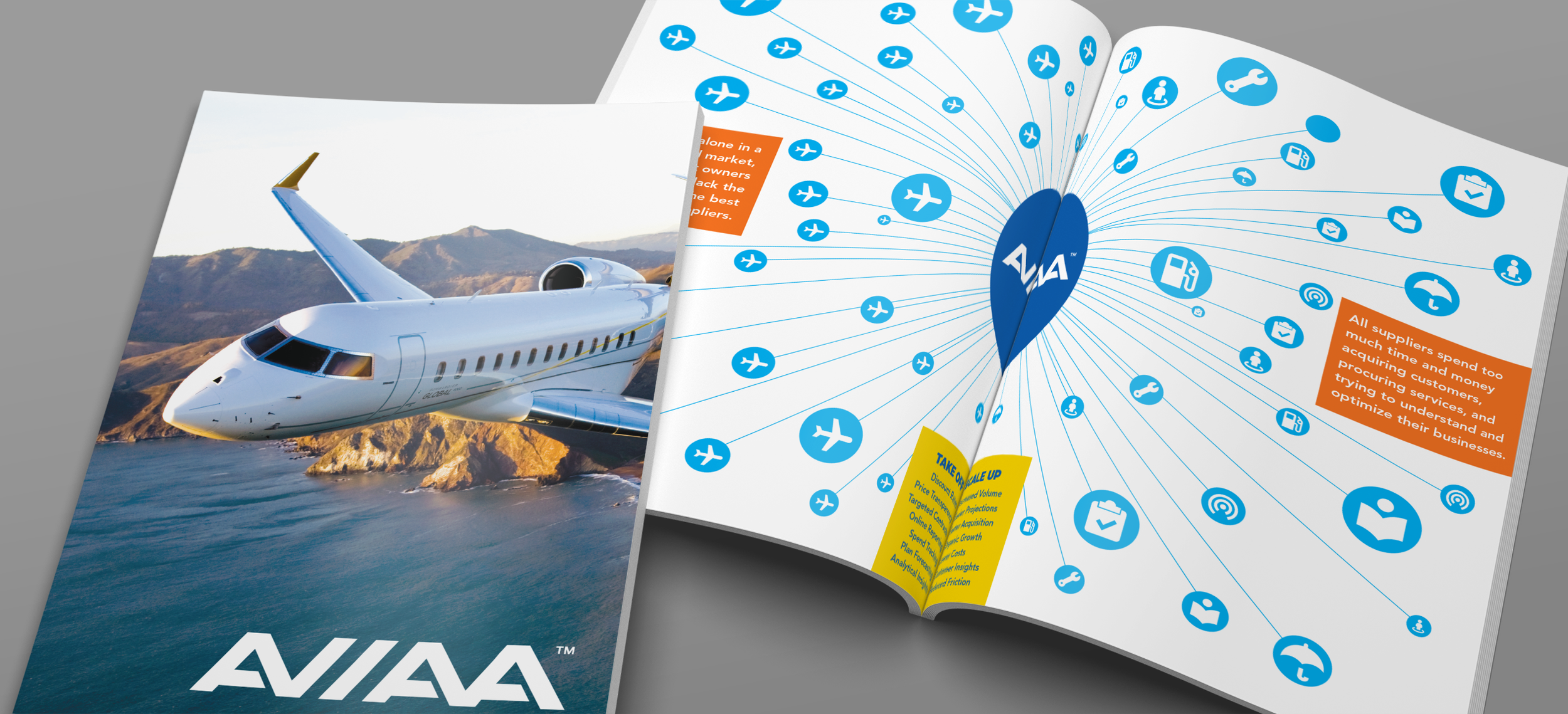 ETCH partnered with AVIAA, the world’s only global group purchasing organization in the aviation industry, to create a complete visual identity and launch campaign. Inspired by aviation’s precision and balance, we designed a clean, modern logo with a flexible system of lockups, refined color palette, and clear typography. The new identity extended across press materials, postcards, a launch brochure, website, and social media, positioning AVIAA as a trusted leader in efficiency and innovation. The cohesive system established instant credibility and provided a strong foundation for growth.